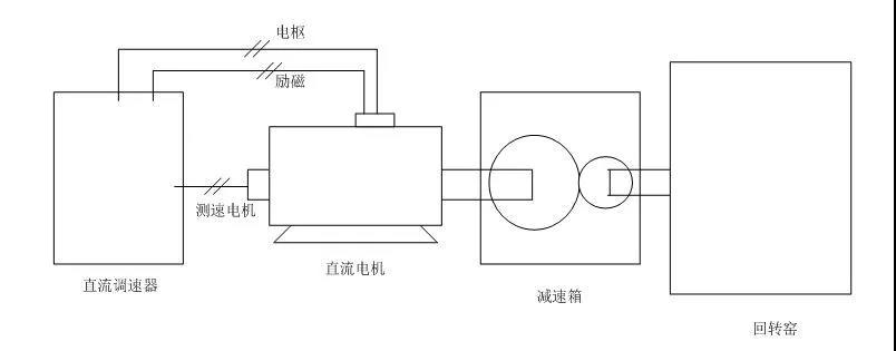 工艺流程 回转窑的驱动大多采用直流电机,由直流电机通过减速箱传动,驱动窑体运转。由于窑体庞大(直径在3-5米,长度50-70米,重量达几百至千吨),且窑的工作特性是长期不停的转动,要求驱动系统应具有启动力矩大、转速均匀、平滑无极调速的特性。