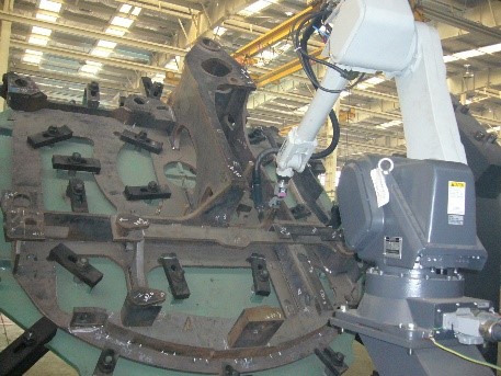 机器人焊接系统是由机器人本体、焊接设备、工装夹具、焊接辅助设备(变位装置、行走装置、回转平台等)、安全围栏及安全防护设备、清枪系统或电极修磨系统等几大部分组成。