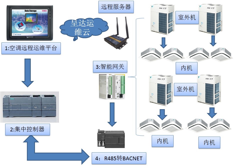 VRV空调智能管理系统(以下简称VRV系统)是上海呈达自动化系统工程有限公司自主创新研制出的以节能、管理、远程集中控制为目的一种新型空调远程控制系统。配置有强制电源控制模块,远程通讯模块,电能管理模块,自控模块,遥控通讯模块,控制器控制空调不需要改装或拆装空调。使空调远程控制更智能,更简单。