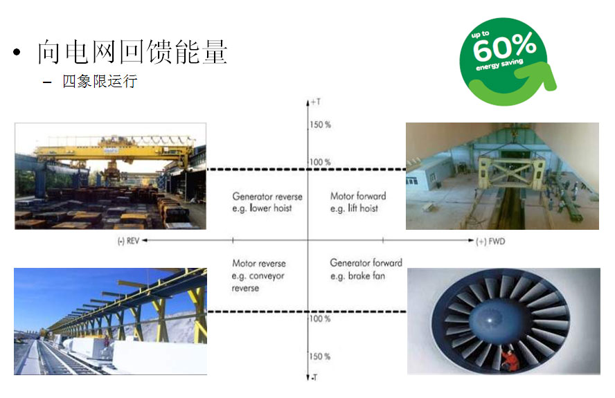■ AFE为四象限运行的整流/回馈单元,由于采用SPWM方式,与可控硅的整流/回馈单元的工作原理完全不同。它在回馈运行时不必有自耦变压器配合