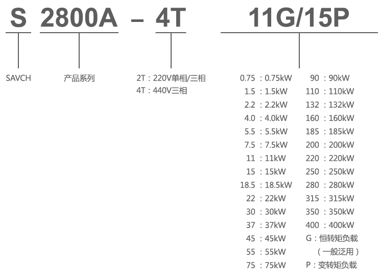 具有双重额度规格:可通过参数设定G型重载/P型轻载规格。