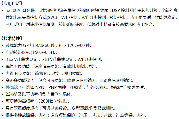 νS2800A系列是_款増强型电流矢量控制的通用型变频器,DSP控制系统主芯片升级,全新的高